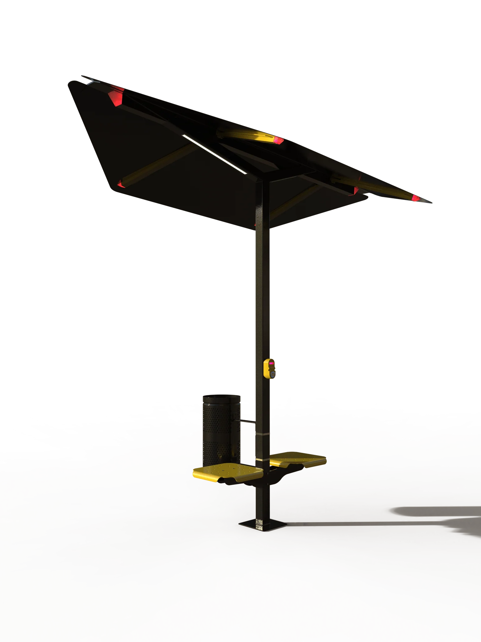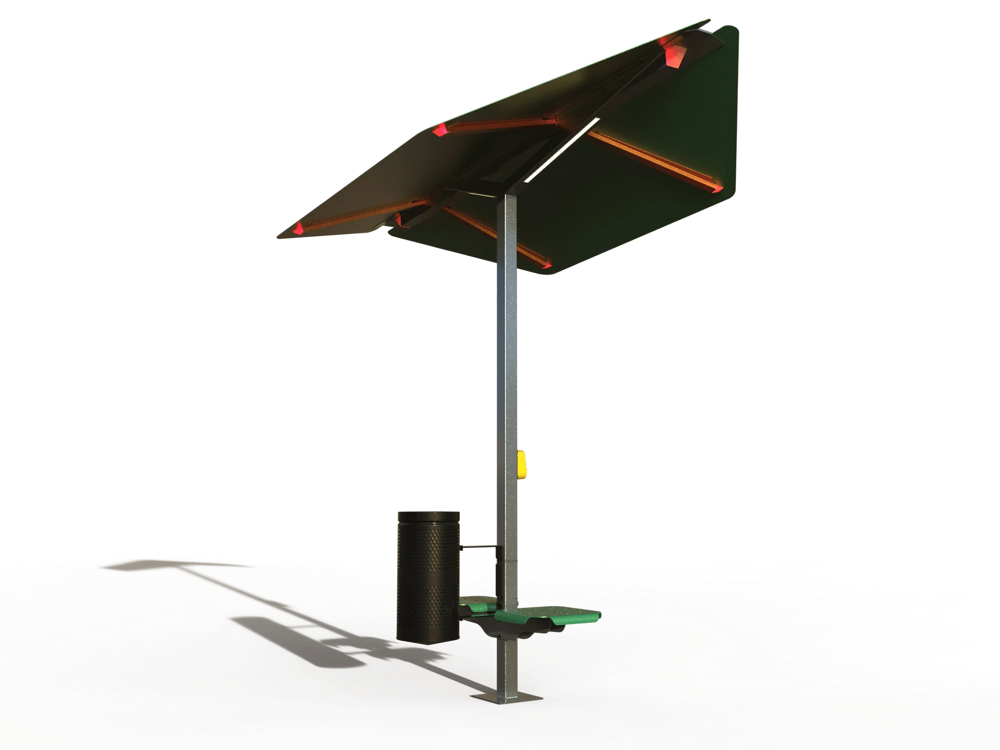 SELS Solar presents the "Leaf Cover": a contemporary, solar-powered shaded seating system for transit stops. This innovative design combines leaf-inspired aesthetics with dual seating, optimizing space while providing shelter. Powered by solar energy, its integrated lighting ensures visibility during darker hours, promoting eco-friendliness without compromising safety. ADA-compliant pushbutton-activated secondary lights signal bus drivers, prioritizing inclusivity. Focusing on functionality and modernity, the Leaf Cover redefines transit stop amenities, offering a sleek, efficient, and user-centric solution for enhanced commuter comfort and urban aesthetics.