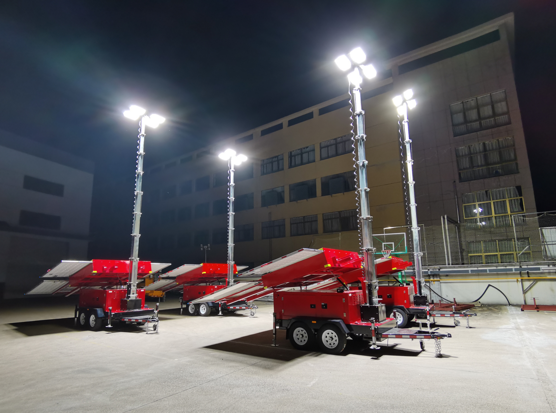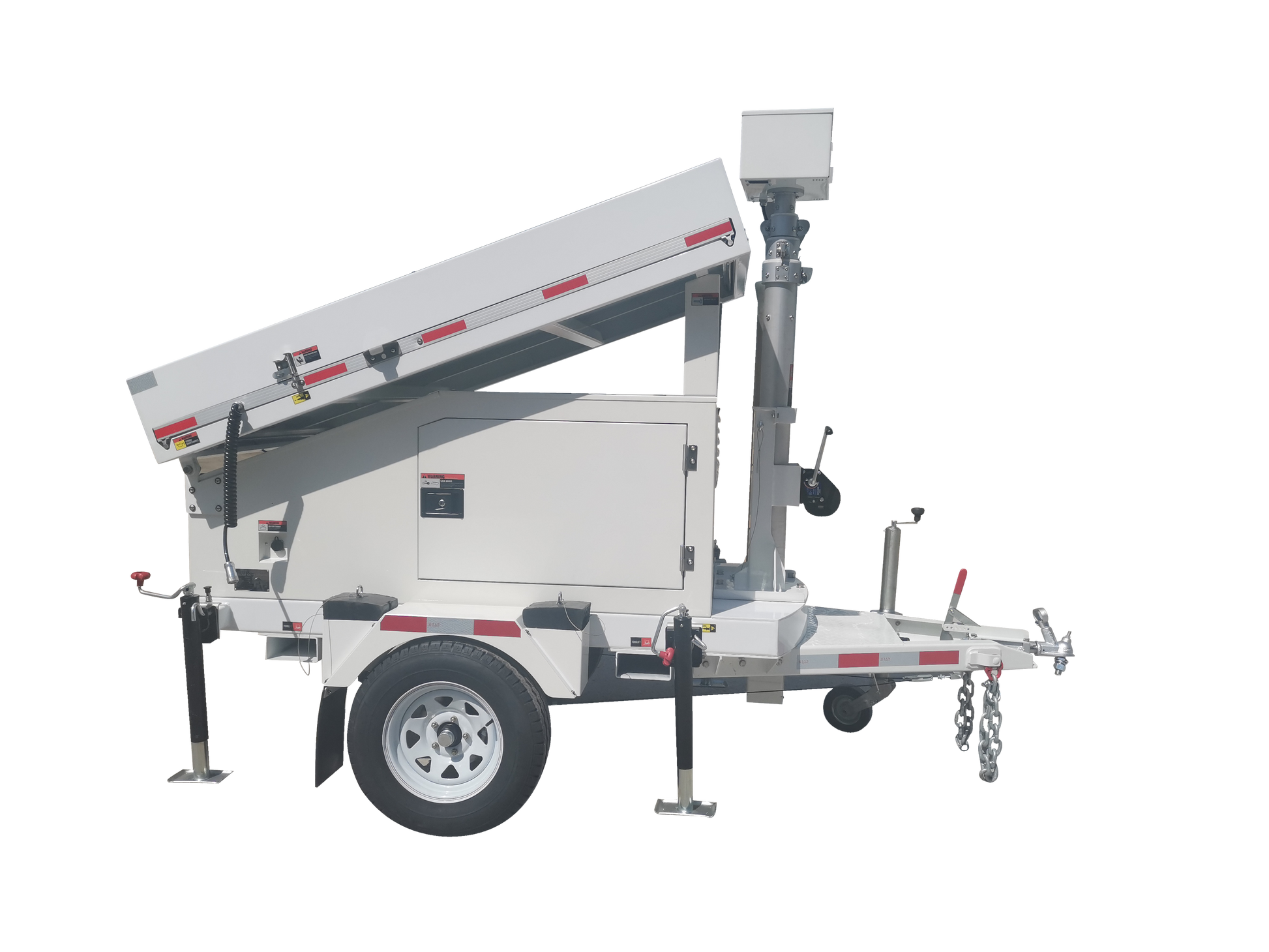 - Electric or hydraulic mast controls and directional light adjustment from the ground allow for fast setup